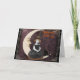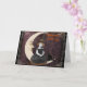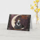 Petite sorcière assise sur une lune de papier vous souhaite les salutations d'Halloween. A l'intérieur, on dit : "Si j'étais une sorcière, sur un gros interrupteur, à travers l'air, je volais tout autour, puis je descendais au sol et je vous donnais une terrible peur"