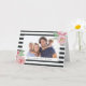 Le carte photo assez floral du jour de mère comporte votre horizontal préféré ou aménage la photo orientée encadrée par un charbon de bois -noir et les rayures blanches et accentué avec des groupes de rougissent les fleurs de pivoine d'aquarelle et le feuille roses de vert sauge. Ajoutez votre message fait sur commande utilisant le champ fourni ; nous l'aimons avec "le jour de mère heureux" et l'année. Personnalisez avec un message intérieur imprimé aussi bien.