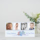 Ce carte photo de vacances propose une famille de bonhomme de neige sur un arrière - plan de flocon bleu et 4 spots pour vos photos. Facile à insérer votre propre photo et le choix de salutation.