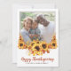 Une carte de Bon thanksgiving rustique avec une photo de famille bordée de tournesols et une typographie de script moderne. Personnalisez avec votre nom de famille.