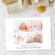 Faire-part de naissance photo minimal pour annoncer l'arrivée de votre bébé à la famille et aux amis. La photo de votre nouveau-né remplit le devant et est superposée de "elle est ici !" "il est ici !" ou "Je suis ici !" dans un script contemporain (vous pouvez déplacer ce texte dans une autre zone de la carte en fonction de votre photo en sélectionnant "modifier dans l'outil de design"). Ajoutez ci-dessous son nom, sa date d'arrivée et ses statistiques de naissance. Au contraire, ajoutez quatre photos de famille supplémentaires, un message "accueilli par" et les prénoms des parents et des frères et soeurs.