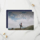 Avec une typographie simple mais élégante, cette carte de conservation de date est un design classique qui présente une seule photo horizontale. Le texte blanc est placé en haut de la photo avec un filtre assombrissant pour une meilleure lisibilité. Le dos est un bleu marine tacheté, mais la couleur est modifiable en cliquant sur "personnaliser".