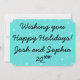 Les jouets ont pris vie sur ce Carte photo rétro de la Parade de jouets de Noël ! Le design minimaliste est composé d'une gracieuse ballerine et d'un craquelin coloré posé sur une scène à grains de bois. Un sapin vert de Noël au design géométrique plus vert éclatant sépare les deux jouets. Derrière le duo ludique, on peut voir deux arbres de Noël de plus, l'un vert avec des pois blancs et l'autre un motif de chevrons vert et blanc. La toile de fond est turquoise avec la chute de neige bleu clair. La ballerine porte un tutu rose et des chaussures d'orteils. Ses cheveux blonds sont dans un chignon classique. Le puissant casse-noix porte une veste rouge et or aux accents noirs et une large ceinture noire. Il a même un casquette impressionnant à égaler! Son pantalon bleu royal est encastré dans de hautes bottes noires. (Mieux vaut marcher, ma chère !) Les visages de la paire sont prêts pour vos photos ! C'est vrai ! Vous n’avez pas besoin d’une photo professionnelle, ni même d’une photo avec les deux sujets ensemble. Avec ce design délicieusement fantaisiste, vous pouvez choisir le meilleur cliché de deux personnes, remplacer les photos modèles, et... Voila! Vous avez vous-même un carte photo de vacances qui ravira vos amis et votre famille! Le côté opposé de la carte a un arrière - plan turquoise avec des boules de neige bleu clair. Personnalisez avec votre message spécial de vacances. Ce design est parfait pour les jeunes, les jeunes de coeur, et le plus simple et original ! Photographie © Storytree Studios, Stanford, CA