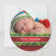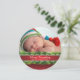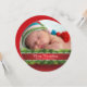 Carte photo moderne en forme de cercle de Noël avec des branches de pins verts avec dentelle et un ruban rouge.