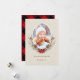 Envoyez un accueil de vacances à votre famille et à vos amis. Ce design présente des cornes de pin aquarelle, des baies rouges et des poinsettias sur un faux arrière - plan de texture de toile de burlap avec motif plaid d'hiver sur le dos. Pour une personnalisation plus avancée de cette conception, veuillez cliquer sur le bouton "Personnaliser". Des articles correspondants sont également disponibles.
