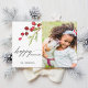 Ce carte photo présente des baies peintes d'aquarelle rouge et une branche de pin avec les mots "Joyeuses fêtes" Envoyez une joie de vacances à votre famille et à vos amis.