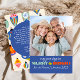 Des ornements d'arbres rétro rendent ce lieu de vacances coloré et nostalgique. Une photo à l'avant et un espace pour un message personnel à l'arrière.