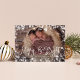Simple et chic, la carte photo de vacances dispose de votre photo de famille préférée, recouverte d'une bordure de livre blanc qui évoque l'aspect d'une fenêtre glacée. "Merry & Bright" apparaît le long du bas dans les lettres de script blanc moderne. Personnalisez avec votre nom de famille et l'année nichée dans le design. Les cartes renversent vers un motif de vignes subtil en vert d'épinette.
