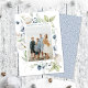 Ce carte photo de vacances élégant et classique présente votre photo encadrée par de beaux feuilles d'aquarelle, des baies et d'autres verdure sur un arrière - plan blanc simple. L'accueil sur le devant dit "HAPPIEST HOLIDAYS" dans une police serif classique. L'arrière de la carte a un simple arrière - plan à rayures vert sauge et blanc, qui peut être retiré si désiré. Vous pouvez également ajouter une autre photo à l'arrière et/ou du texte supplémentaire à l'arrière.