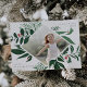 Elégant carte photo de vacances dispose d'une photo préférée entourée d'une bordure géométrique de riche feuillage botanique vert de forêt et de minuscules baies sèches d'aquarelle rouge. "Laissez le ciel et la nature chanter" apparaît dans le coin supérieur droit en lettres grises, avec votre nom de famille en bas à gauche. Personnalisez le dos avec trois photos supplémentaires et un message personnel.