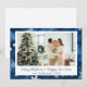 Envoyez des vœux chaleureux pour l'hiver avec cette élégante carte de vœux photo plate, mettant en vedette un riche fond bleu orné de délicats flocons de neige blancs et d'accents bokeh doux. Conçue comme une carte plate unilatérale, cette pièce offre un format moderne et épuré qui met en valeur votre photo de famille préférée dans une mise en page magnifiquement encadrée. Sous l'image, un message de fête personnalisable et le nom de la famille ajoutent une touche personnelle et sincère.