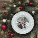 Un carte photo de vacances élégant et de forme ronde unique présente une photo préférée entourée d'une couronne de feuillage blanc d'hiver sur un arrière - plan bleu-vert pâle glacé. Personnalisez-vous avec un accueil de vacances personnalisé (montré avec "vous avez un joyeux petit Noël"), votre nom ou nom de famille, et l'année en lettres grises chic.