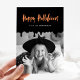 carte photo éffrayant Halloween avec "Happy Halloween" en lettres orange. Le haut du design présente du sang noir moucheté coulant sur votre photo affichée ci-dessous. Personnalisez le devant de la sanglante carte d'Halloween avec votre nom. Le dos de la carte est muni d'un arrière - plan noir tacheté.