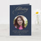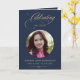 Carte Photo Elegant Blue Gold Script Funeral Program