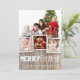 L'arrière - plan en bois rustique et patiné et le mélange lunatique de la typographie prépare le terrain pour une salutation espiègle de vacances de pays pour la famille et les amis. Avec la pièce pour un collage multi de photo de votre famille, cette conception encadre trois plus petites photos et une grande photo avec une frontière de grain en bois simulé au fond et une petite notion des flocons de neige blancs sur les bords. Ajoutez un joli ruban par le trou au dessus de la forme d'étiquette pour un regard vraiment spécial !