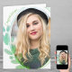 Félicitation ! Joli carte photo que vous pouvez personnaliser à l'intérieur pour toute occasion comme l'obtention de diplôme, promotion, grossesse, prix, permis de conduire, etc. Le modèle photo est configuré pour que vous puissiez ajouter votre image préférée qui s'affiche dans une forme ovale. Votre photo est encadrée d'un cadre ovale multi-lignes et de feuilles d'aquarelle douce. Si vous avez des difficultés à placer votre image, essayez de recadrer une forme de portrait vertical avant de télécharger.