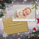 Une élégante carte de faire-part de naissance de vacances en feuille d'or avec votre photo préférée, le nom du bébé, les statistiques de naissance, et votre message de vacances ensemble dans la typographie moderne classique. Conçu par Thisisnotme©