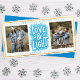 Envoyez des voeux chaleureux à Hanoukka avec ce carte photo moderne "Amour & Lumière", parfait pour célébrer la saison en famille et entre amis. Doté d'une typographie bleue audacieuse, de fleurs festives, d'une bordure de style parties scintillant dorée et d'un espace pour deux photos personnalisées, ce design allie tradition et charme contemporain. Personnalisez-le avec votre nom de famille et votre année pour en faire le vôtre. Une belle façon de partager chaleur, amour et lumière pendant le Festival des Lumières!