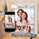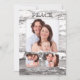 Une carte de Noël rétro avec vos propres photos encadrées par un design en bois rustique et vos textes personnalisés. Sur le dos est un pois de polka design en gris et blanc.