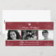 Mettez en valeur votre famille avec trois photos sur un joli fond saisonnier à motif de flocon de neige, rehaussé de filets verts. Votre message de vacances personnalisé se détache en blanc sur le fond rouge écarlate surmonté d'un seul flocon de neige blanc. Disponible en couleurs alternatives avec des faveurs et un affranchissement assortis
