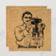 Un vieux photographe vintage amusant avec un design d'art illustré de caméra avec un arrière - plan de papier de carte marron clair!