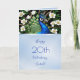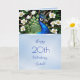 La partie supérieure de cette élégante carte de voeux d'anniversaire comporte un paon avec des fleurs blanches.La partie inférieure est composée d'un champ de texte métallique bleu et d'un texte d'anniversaire personnalisé dans un élégant script manuscrit combiné à une police artistique moderne. À l'intérieur est un texte d'anniversaire personnalisé que vous pouvez modifier ou supprimer.