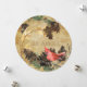 A beautiful Christmas holiday card to send to all your friends and family members, feas round card with a brown textured look background, pine cones, tree branches, a cardinal bird, and customizable text reads Joyhe Noël on the front, the solitextured look background, pine cones, branch tree, and a woodpecker with a customizable area to add your family name, first names, and current year on back