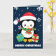 Apportez de grands sourires de vacances avec cette carte de Noël douce avec un adorable pingouin dans un chapeau de Père Noël, foulard rayé, et tenant deux cadeaux colorés! Encadrée par un ciel marin profond parsemé de flocons de neige ludiques, cette carte est parfaite pour les enfants, camarades de classe, cousins ou tout petit sur votre liste de vacances. Les couleurs vives et le design gai en font un choix idéal pour les échanges scolaires de vacances, les farces de bas, ou dans le cadre d'un sac cadeau festif. Pas besoin de personnalisation, juste une pure joie de Noël ! Design de pingouin : par Prettygrafik Design (https://www.etsy.com/shop/Prettygrafikdesign)