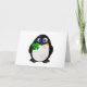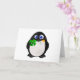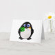 Un mignon petit manchot de dessin animé portant un grand shamrock vert dans son bec.