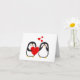 Cette illustration présente un pingouin qui donne un grand coeur rouge à un autre pingouin. Ce design, moderne et mignon, est parfait pour la Saint-Valentin. À l'intérieur de la carte, vous pouvez garder le texte "Sois le pingouin de mon coeur !" ou le personnaliser avec votre message. ou même supprimer le texte, si vous préférez la carte blanche pour écrire votre message à la main.