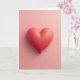 This greeting card features a coral-red heart centered on a soft blush-pink background, creating a calm and romantic look. The heart appears three-dimensional, with smooth curves and a gentle shine that catches the light. Soft lighting from above creates a faint shadow underneath, making the heart seem as if it’s floating slightly above the surface. Tiny bead-like droplets are scattered across the heart, adding subtle texture and a lifelike touch. There are no words or extra elements on the front, keeping all the focus on the heart itself. The design feels warm and thoughtful, making it an easy way to express care and affection on Valentine’s Day