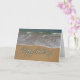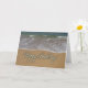 Bel océan bleu avec des vagues de blanc et anniversaire de plage et joyeux sablonneux dans la police de manuscrit.