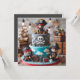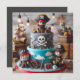 PLAISIR DE PIRATES À THÈME ANNIVERSAIRE DE ENFANT CAKE EN COUCHE SUR LE DEVANT DE LA CARTE. COPIE COMPLÈTEMENT MODIFIABLE SUR LE DOS.