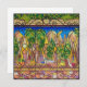 Un motif complexe d'une porte en fer recouvre une scène de jardin colorée avec des plantes en pots et des vignes. La composition combine des couleurs vives et des formes géométriques, créant une pièce visuellement captivante. Retour : Vide