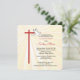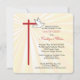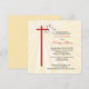 Belle carte d'invitation pour la confirmation d'une fille. Les rayons dorés brillent derrière une croix en rouge et une colombe blanche. Le rouge est la couleur de la Confirmation et la colombe symbolise l'Esprit Saint. Personnalisez le texte pour le rendre parfait pour vos besoins pour sa Confirmation. Les angles de cette carte carré sont arrondis et ajoutent un élément cohésif aux bords arrondis de la croix.
