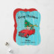 Un teckel mignon et personnalisé faisant des achats d'arbres de Noël dans son camion rouge classique.