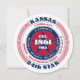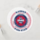 Un design audacieux et patriotique avec du rouge, du blanc et du bleu évoque des sentiments de liberté, de loyauté et d'unité. Le nom de l'État, "Kansas", est visible en bonne place, entouré d'informations sur la capitale, les résidents, la région, le fuseau horaire et les coordonnées géographiques. Le verso est vierge - laissez-le tel quel ou ajoutez votre texte en accédant à l'outil de conception. Parfait pour les fêtes nationales et les événements patriotiques.