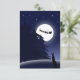 Il y a une pleine lune, Père Noël est dans son traîneau et vole au-dessus d'une rangée de pins lune, un petit lapin est assis à regarder, si doux ! Vous pouvez modifier la couleur de l'arrière - plan au dos et ajouter du texte ! Des cartes de customisée amusantes à Zazzle ! Art par Cherie(c)2022