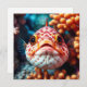Une carte vierge avec un poisson mignon visage fermé juste parce qu'il est mignon! Un poisson blanc et orange au corail orange.