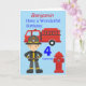 Conception amusante d'un sapeur-pompier avec le camion de pompiers et la borne d'incendie. Cette carte serait une carte amusante à envoyer à tout enfant qui a un anniversaire et qui aime jouer avec les camions et les figurines. L'âge sur le devant et l'âge sur le casque peuvent être modifiés à un âge différent, le nom en haut de la carte et le message à l'intérieur, qui se lit "Joyeux Anniversaire ..... Passez un excellent moment.... avec amour de ...." peuvent être modifiés pour personnaliser la carte.