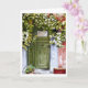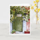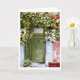 Une vieille porte verte patinée presque cachée derrière la vigne colorée qui pousse sur le côté de la maison. Le plâtre rouge écaillé au mur ajoute un contraste agréable au vert de la vigne. Reproduction d'une aquarelle originale.