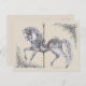 Pen and ink drawing with watercolor tinting. A fanciful seasonal carousel horse decorated for Summer, inspire by the "Philadelphia school of carousel horse artisans who strove for réaliste in their carvings. This splendid "stander" is adorned with the quintessential summer flower : roses ! Decked out in shades of blue, green, pink and gold, this pale gray steed invites you savor the chaud of summer. Perfect to announce a summer party, a bridal or baby shower, or just to say hello to a special personne ! The card can be customized by adding text and changing the background color to suit your taste !