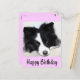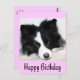 Aww...Qui peut résister au visage mignon d'un chien chiot de Border Collie ? Cette carte postale amusante Happy Birthday salue le portrait d'un chien endormi noir et blanc bordé d'une bordure rose pâle avec une bordure rose pâle soulignant un accueil heureux Birthday. br> Anniversaire Les cartes postales sont une alternative économique aux cartes de voeux lorsque vous voulez envoyer une note d'anniversaire rapide. D'autres cartes d'anniversaire canines que vous pouvez aimer... com