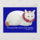 Le psychiatre autrichien Sigmund Freud (1856 - 1939), le père fondateur de la psychanalyse, aimait les chats, comme le montre cette merveilleuse citation sur notre carte postale : "Le temps passé avec les chats n'est jamais perdu." Les grands mots sont assortis à un tableau tout aussi grand de l'artiste japonais ukiyo-e Takahashi Shotei (1871 - 1944). Appelé Tama (chat blanc), il présente un chat blanc magnifiquement serein et contenté avec de beaux yeux jaunes. La carte postale serait parfaite pour les amoureux de les chats et les admirateurs de l'art japonais vintage. Vous pouvez changer la couleur de l'arrière - plan sur la carte postale pour convenir.