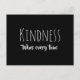 La gentillesse gagne à chaque fois. Carte postale noire avec typographie gris clair.