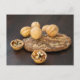 Carte postale représentant des noix mûres sur une écorce lissée par les eaux d'une rivière
