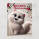 Répandez les fêtes avec cette carte postale "Meowy Christmas" ! Ce design est composé d'un chat blanc et moelleux aux yeux brillants et curieux, niché dans une scène cosy et festive avec des flocons de neige qui tombent doucement autour. Le chat porte un joli chapeau de Père Noël rouge, ajoutant une touche de charme de Noël. Les mots 'Meowy Christmas' sont écrits de façon ludique dans une police chaleureuse et joyeuse, capturant l'esprit de la saison. Parfait pour les amoureux de les chats et tous ceux qui veulent envoyer un accueil de vacances chaleureux et d'inspiration féline à des amis et à la famille!