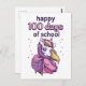 Mignonne licorne portant un sac à dos et tenant un gros stylo avec la citation "Joyeux 100 jours d'école". Joyeux 100ème jour d'école ou heureux 100ème jour de jardin d'enfants.
