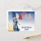 Carte de voeux Patriotique BASTILLE DAY, avec plan combiné avec le drapeau TRICOLORE de FRANCE. Sur la droite se trouve la devise française Liberté, Egalité, Fraternité et en dessous, on peut lire Joyeux Quatorze Juillet (illuminé. Joyeux 14 juillet)