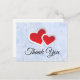Merci carte postale avec une illustration de 2 coeurs en papier - rouge avec une bordure blanche. Situé sur un élégant arrière - plan en marbre bleu glacé.